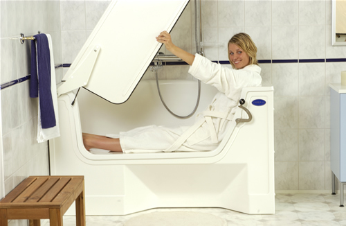 Die rollstuhlgerechte Höhe des Wannenbodens gestattet ein einfaches Übersetzen. Hierdurch wird auch Rollstuhlfahrern und Menschen, die stark in ihrer Bewegungsfähigkeit eingeschränkt sind, der eigenständige Gebrauch dieser Wanne ermöglicht.